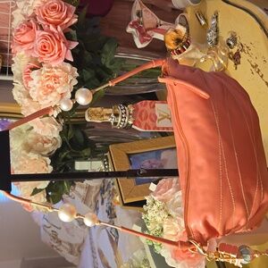 Elegant black clutch by Coach. Features gold hardware. Perfect for any occasion.