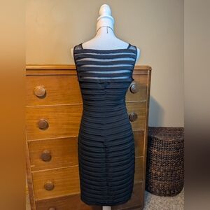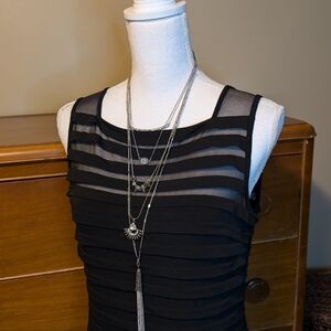 London Times Slimming Black Tiered Midi Cocktail Dress Size 10