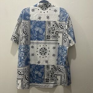 Paisley Men's Button Up Short Sleeve Shirt Blue White And Black Size XXL