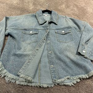 Sparkle denim jacket/Shacket! Frayed bottom! Tons of sparkle all over. Size S
