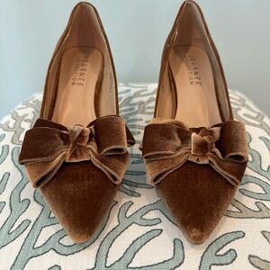A soft velvet fabric upper decorated with a bow accent at the toe offers a great style to the Crystol pump from Journee Collection. Size 9.5. This slip-on pump has pointed toe and padded footbed to provide superior comfort. NWOT