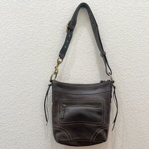 Vintage Y2K COACH 10398 Dark Brown Leather Bleecker Duffle Slim Shoulder Crossbody Bag. Pre-owned with normal wear from use consistent to age. Upper right front side has obvious LEATHER WEAR, SCRATCHES & SCUFFS, DISCOLORATION as shown. Inner lining is clean with no issues. Hang tag is MISSING! Please refer to the photos for details and measurements. You will receive exactly as pictured! Sold “As Is!”.