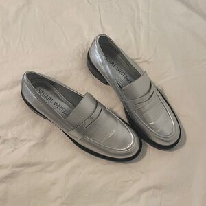 Stuart Weitzman Metallic Silver Loafers NWOT