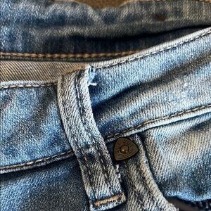 These blue straight leg jeans from Kut from the Kloth feature a vintage-inspired fade and natural distressing, offering a relaxed and authentic look. The light-to-medium wash denim transitions beautifully from lighter to darker hues, enhancing their casual appeal. *Excellent Condition *See Pictures Size 8 Waist 14.5” L 37 “