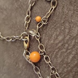 PREMIER DESIGNS Orange Gold Dangle Beaded Fringe Chain Necklace