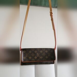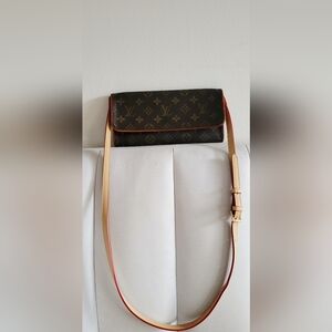 100% Authentic Louis Vuitton Pochette Twin GM in the iconic Monogram pattern. This stylish shoulder clutch bag is a must-have for fashion-forward women who appreciate luxury and craftsmanship.