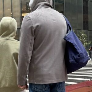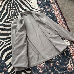 Stylish gray performance jacket. Sleek design. Perfect for active wear.