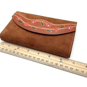 Vintage Boho Style Tooled Suede Leather Wallet