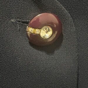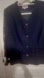 Elegant navy blue blazer by featuring intricate embroidered sleeves and detailed sparkly buttons. Perfect for adding a touch of sophistication to any outfit with slight vintage style. Shoulder pads that could be removed if desired. Research indicates this could be an Italian inspired Canadian brand probably from early to mid 1990’s. Approx PTP of 21 inches and length of 25 inches.
