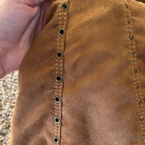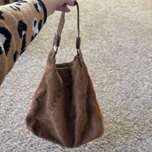 Stylish brown suede bag perfect for any occasion. Features a comfortable handle and elegant design.