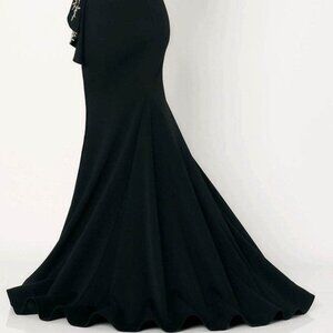 New with tags. Sophisticated black formal gown featuring intricate embroidery and a figure-flattering mermaid silhouette. Elegant for black-tie events, galas, mother-of-the-bride/groom, or any evening occasion. Structured bodice smooths and supports; flared hem adds dramatic movement.