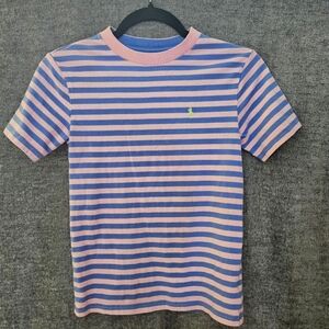 This top is SO CUTE and really hard to photograph! The last photograph, with the model wearing the shirt, is just to show how it fits when worn. The pattern and colors are in the first two photographs. Excellent condition!