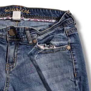 Maurices Womens Denim Blue Jeans Flare Leg Paint Distressed Medium Wash Size 7 8