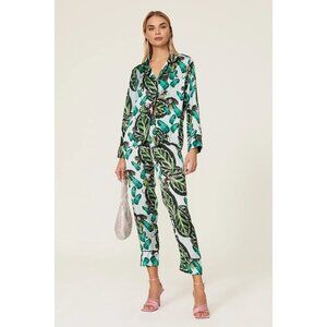 Lobo Rosa Green Floral Print Tropical Pajama Pants Women's Size Medium M