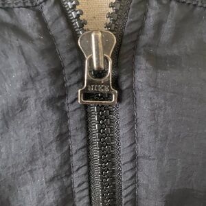 Embroidered Nike Logo on front and back of the Jacket. Has pockets.