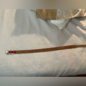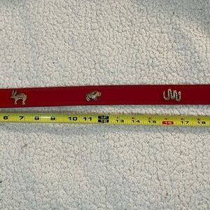 Stylish red leather belt featuring a sleek silver buckle. Perfect for adding a pop of color to any outfit. EUC like new, see pics for details.