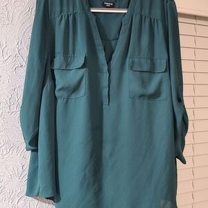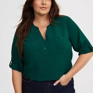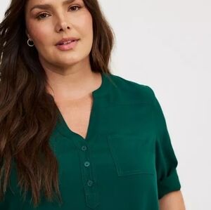 Torrid Botanical Garden Hunter Green Harper 3/4 Sleeve Tunic Top (Size 6)