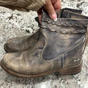 Fits more like a 6.5. These boots are one of a kind and handmade by Canty Boots® It’s an upscale, western brand and store located in Southwest Montana, in the rural town of Harrison (population 200). Fifteen years ago, Nikki discovered a pair of exotic cowgirl boots to be problematic with the tall shafts constantly rubbing her calves. After snipping and cutting the shafts, Nikki rolled them down and gave them a new identity as a pair of short boots. She took her creativity one step further by wrapping mismatched leather straps around them and thus, the first pair of Canty Boots® was born. https://cantyboots.com/ I can’t remember what I paid for these but most of her boots sell for between $500 up to $1400. These would’ve been more expensive with the snake skin