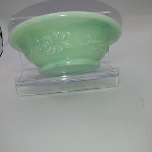 The Avon Victorian Rose set is made from glass and has a marbled, milk-like texture that is both delicate and charming. The set is an original piece from the 1970s, and its age only adds to its vintage appeal. With its unique design and features, this Avon set is perfect for collectors of decorative items.