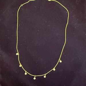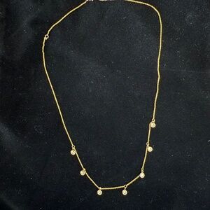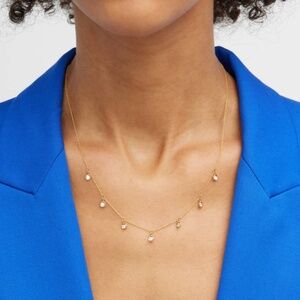 A stunning, ultra-feminine piece from renowned Italian designer Roberto Coin. This elegant necklace features seven round brilliant-cut diamonds, each bezel-set and delicately suspended for beautiful movement and sparkle. Crafted in solid 18K yellow gold, it’s the perfect everyday-luxe piece that layers beautifully or stands on its own.