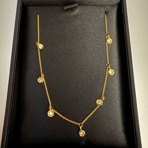 New, Authentic Roberto Coin 18K Yellow Gold Seven-Station Diamond Necklace