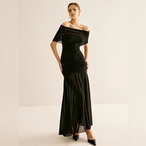 Pleated Mesh Tube Dress With Shawl Commense XS CC15