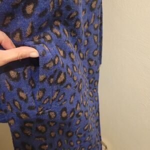 Bold leopard print in blue and brown. Cozy teddy fabric. Perfect for a statement look.