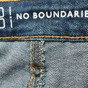 Trendy ripped jean shorts. Deep blue hue. Ideal for casual wear.