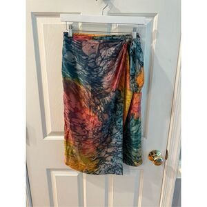 Vintage Diane Gilman 100% Silk Watercolor aside Tie Skirt sz 8 NWT