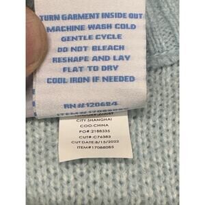 The CARE BEARS Women Hot Topic 1X Cloud Chunky Knit Skimmer Cardigan Sweater is a stylish and comfortable addition to any woman's wardrobe. Featuring a solid blue color with a chunky-knit pattern and Care Bears logo embroidery, this cardigan has a V-neckline, long sleeves, and raglan sleeves for a trendy look. Made of lightweight acrylic fabric, this sweater is perfect for layering over any outfit, with heart-shaped buttons adding a cute touch. With a regular fit and shoulder to bottom hem measurement of 26 inches, this cardigan is both practical and fashionable for everyday wear.