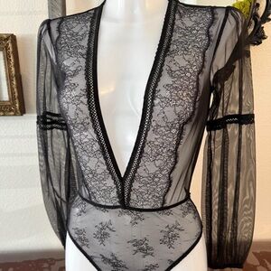 Victoria’s Secret very sexy black lace plunge deep v bodysuit size small