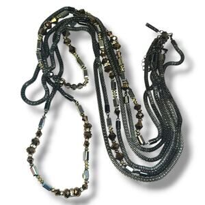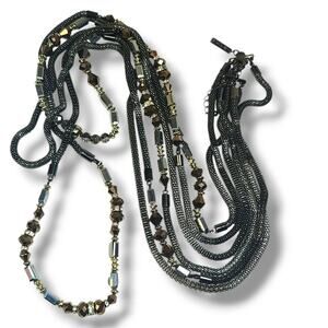 WHBM Multi-strand Snake Chain‎ Crystal Bead Station Necklace 32"-44"