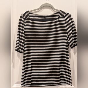 ✨ Item: Talbots Women's Black and White Striped Boat Neck Top