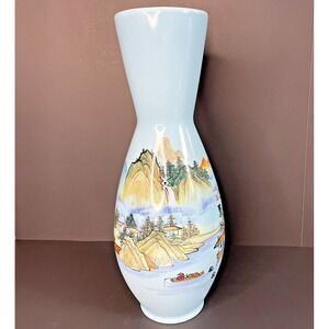 LARGE BLUE ORIENTAL CHINESE HAND PAINTED PORCELAIN VASE MOUNTAIN VILLAGE DESIGN