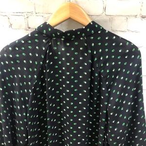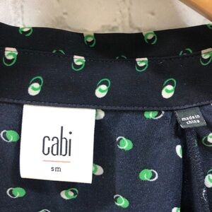 CAbi Martini Top Blouse Style #5019 Size Small Blue Green Button Front Polka Dot