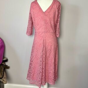 Embrace elegance with this stunning pink lace midi dress. Perfect for any occasion, its delicate lace design offers a sophisticated look.