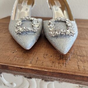 Badgley Mischka Silver Fabia Embellished Pointed Toe Pump Size 8.5