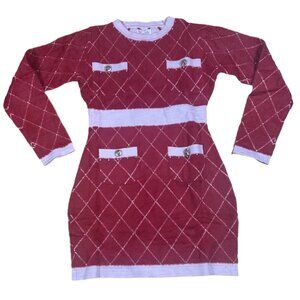 NWT Women’s Red Colorblock Studded Long Sleeve Bodycon Mini Dress Large