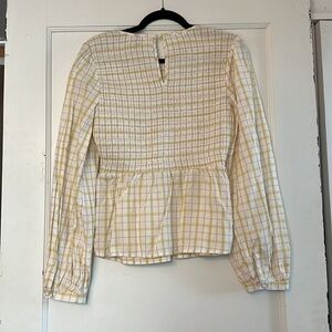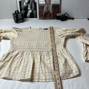 Universal Thread ruched, peplum ,plaid balloon sleeve blouse