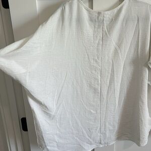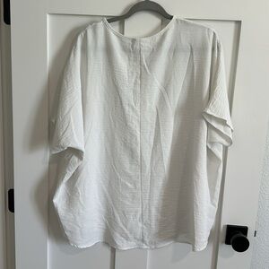 Jodifl Women's M Flutter Sleeve Pocket Tee Shirt White Crepe Texture Oversized