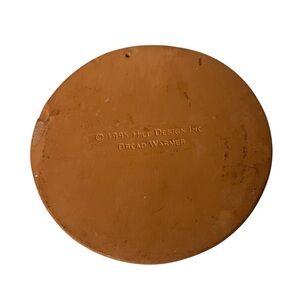 Heavenly Bread Baked by Angels bread warmer. Bottom has some change in color and some chipping. Top looks new. Kitchen bread warmer bakeware. Could be used for sourdough, rolls, or any bread you want to keep warm. Vintage Angel design from 1995.