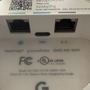Compact Google WiFi hub. Enhances network coverage. Works perfectly. Let me know if u have any questions.