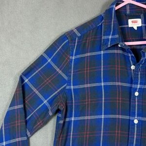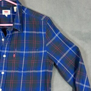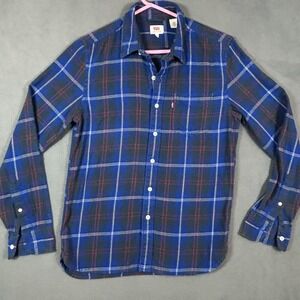 Up for sale is a used - Levis Shirt Mens Small Blue Flannel Long Sleeve Thick Material Button Up Shirt