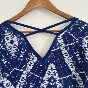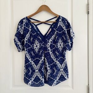 Rebecca Taylor Blue Tie Dye Silk V Neck Blouse Sz 6