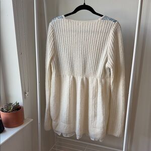 Chic cream sweater with blue knit design. Cozy and fashionable. Purchased from Urban Outfitters. Tags removed but never worn.