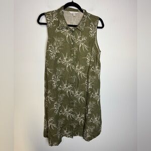 Garnet Hill Bonsai floral linen sleeveless tropical dress shirtdress olive 12