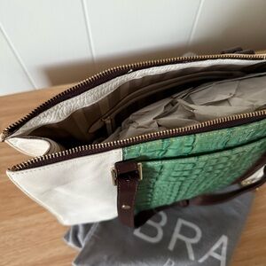 Stylish tote with textured green panel. Never used - I just have too many others that I carry. Dust bag included.
