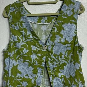Anthropologie Maeve Green Floral London Sleeveless Blouse Sz L