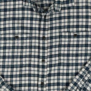The Gap Flannel Untucked Fit Shirt in Men's XL features a blue plaid pattern and long sleeves, making it a versatile option for casual, work, or travel wear. Made from a comfortable cotton blend flannel fabric, this button-up shirt has a regular fit and spread collar, perfect for outdoor or classic-themed occasions. With a focus on blue and hippie character, this colorful shirt also includes convenient pockets and is suitable for all seasons.