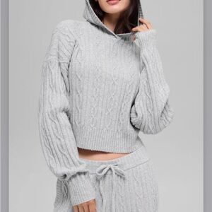 ALO Yoga Cable Knit Winter Bliss Cropped Hoodie Long Sleeve Gray